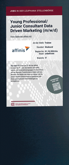 Ihre Anzeige erscheint auf einer beleuchteten Displaystele, die jährlich von rund 510.000 Studierenden und Gästen passiert wird – ein idealer Touchpoint für die Ansprache junger Talente.